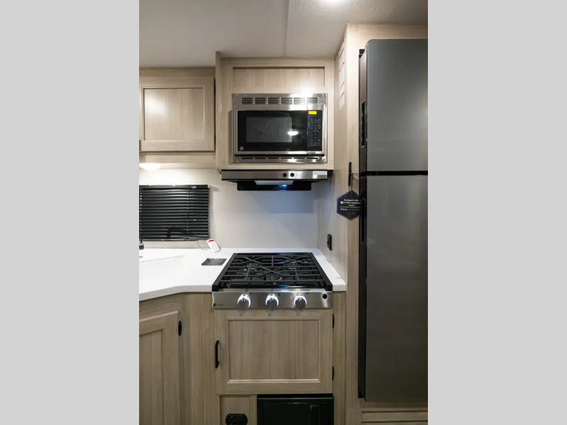 Sleeps 4 Length 25 ft 11 in Ext Width 8 ft Ext Height 11 ft 1 in Int Height 6 ft 9 in Hitch Weight 580 lbs GVWR 6810 lbs Dry Weight 4810 lbs Cargo Capacity 2000 lbs Fresh Water Capacity 38 gals Grey Water Capacity 44 gals Black Water Capacity 29 gals Furnace BTU 30000 btu Available Beds Queen bed Refrigerator Type 12V GE Stainless Refrigerator Size 10.7 cu ft Cooktop Burners 3 Shower Size 36 x 30 Number of Awnings 1 LP Tank Capacity 20 lbs Water Heater Type Tankless On Demand AC BTU 13500 btu Awning Info 18' Electric w/Multicolored LED Light Strip and Remote Axle Count 2 Number of LP Tanks 2 Shower Type Standard Electrical Service 30 amp Similar Floorplans